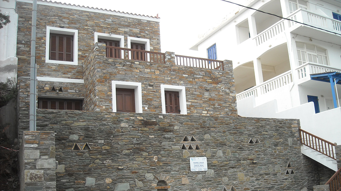 Χτισμένη στον οικισμό του Μπατσιου, επενδυμένη εξ ολοκλήρου με πετρά. Χωρισμένη σε δυο επίπεδα, ανεξάρτητα το ένα από το άλλο. Με θεά στο γραφικού λιμανάκι. Χτισμένη κατά τις επιθυμίες του πελάτη και με σεβασμό και συνεπεια ως προς την αρχιτεκτονικη του γραφικού οικισμού του Μπατσιού.